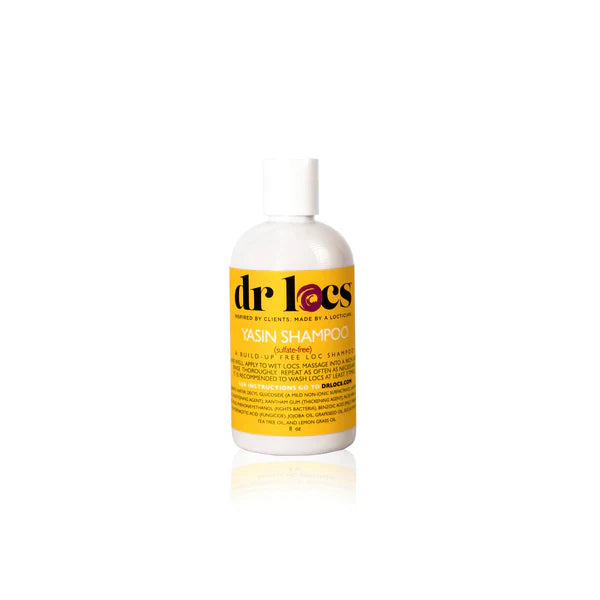 Dr. Locs’ Yasin Shampoo gently cleans your locs and scalp restoring it to a balanced pH. The formula has been tested to assure no build-up will sustain in locs after use. The refreshing mint and lavender scent will leave locs feeling clean and refreshed.